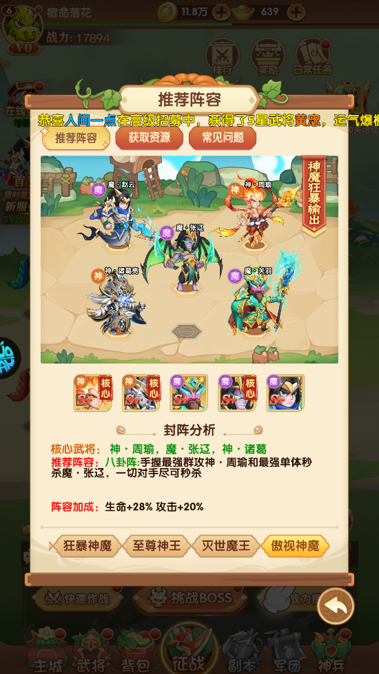 魔・赵云+神・周瑜+魔・张辽+神・诸葛亮+魔・关羽