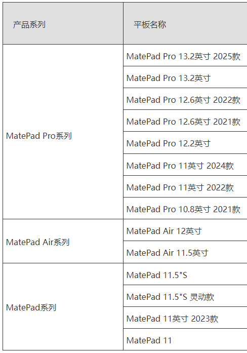 仅以下平板支持下载天生会画,其他型号平板因硬件配置不同,不支持下载天生会画,感谢您的理解与支持!(不支持手机、笔记本等设备)