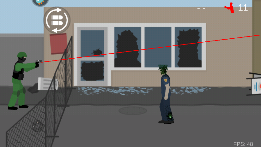 3、进入游戏后,左侧按钮进行移动,点击屏幕进行射击。