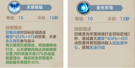 关于审判者的加点,首先介绍审判者必备的两个技能:天使降临、圣光牢笼。如下图所示。