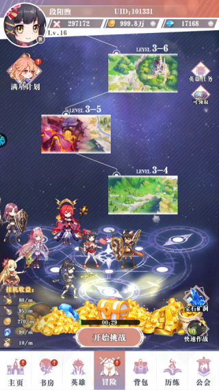 3、主线副本:通关主线副本可以获得海量资源,用来养成英雄是绝对够的,建议前期以推图为主。