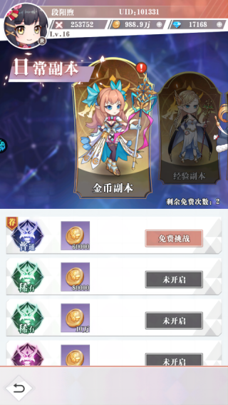 2、材料副本:每日可以免费挑战两次,但解锁需要升级,通关后可以获得大量晶石。