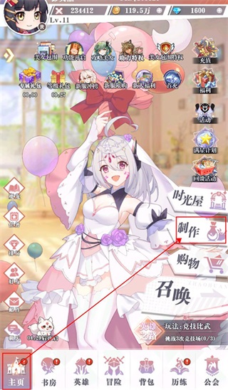1、玩家点击左下角的“主页”,然后点击右边的“制作”即可进入合成页面。