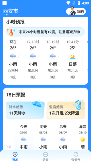 心悦天气(原名瑞奇天气)是一款非常实用的天气预报软件,它通过权威数据源为用户提供了丰富的天气信息,包括实时天气、24小时预报、45天预测以及空气质量指数等。我觉得这款软件最大的优点是精准度高,特别是语音播报和分钟级别的降雨提醒功能,对日常生活特别有帮助。比如下雨的时候,它能提前告诉我什么时候雨会停,这样我就不用在雨中等待了。