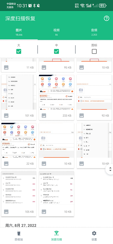 1、在app中打开深度扫描界面,系统会自动扫描过往删除掉的图片、视频和音频