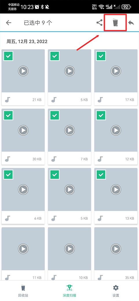 2、然后批量勾选需要删除的文件,然后点击右上角垃圾桶按钮