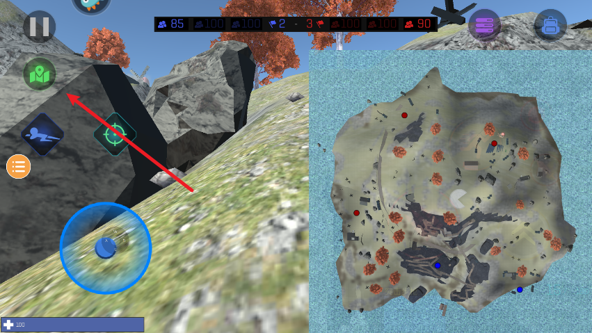 3、进入游戏后控制左侧摇杆进行移动,右侧按钮进行射击。