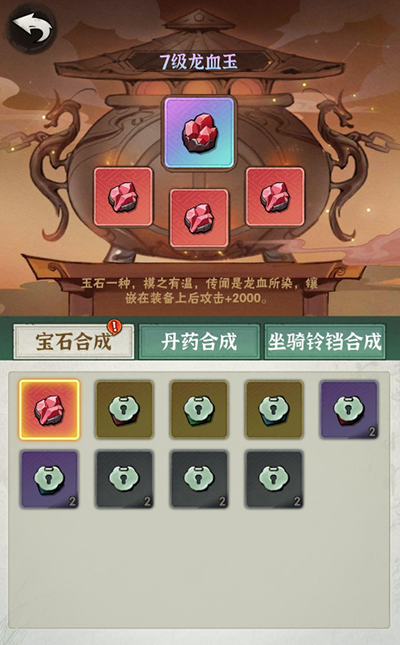 宝石合成:同类宝石可以进行合成,3合1必成功,大幅增加基础属性,长线追求的重要资源。