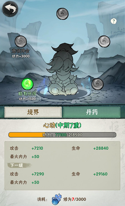 境界系统:获取修为提升境界,除了增加角色基础属性,还可增加内力上限,与武学系统密切关联。