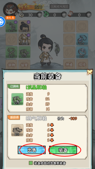 5、当遇到更好的装备可以更换,遇到差的可以直接出售