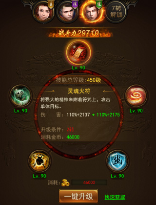 灵魂火符——将强大的精神来附着符咒上,攻击单体目标。