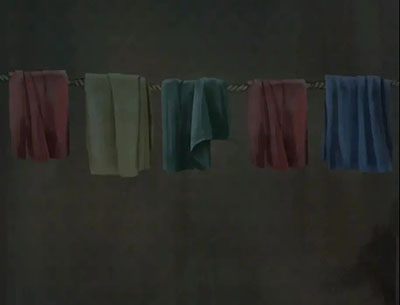 还是先搜刮,左上角树枝堆里拿到柴火,右下角的竹筛子里拿到木炭,左边的灶台下面拿到一盒火柴和草木灰,顺手把柴火放在上层,然后使用火柴点燃柴火。左上角的一排抹布颜色和外面花圈一样,所以调整一下顺序红黄绿红蓝拿到一把钥匙,查看一下右上角的柜子,男主已经提示了用刀割开就行,剧情后查看柜子的左下角使用钥匙果然拿到菜刀,那么对上面柜子使用菜单就拿到面团了,查看一下左边灶台上拿走木盖子放入面团,然后切换一下场景回来就能拿到米糕了。