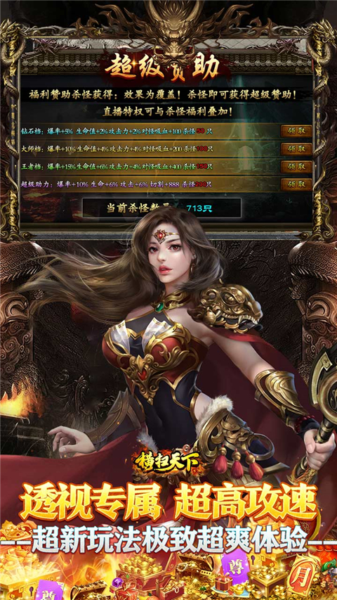 上线即可开启透视功能,轻松定位极品装备,助你一秒锁定目标。全免费模式