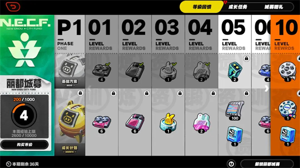 成长任务是获取大月卡经验、城募赠礼是获取大月卡武器