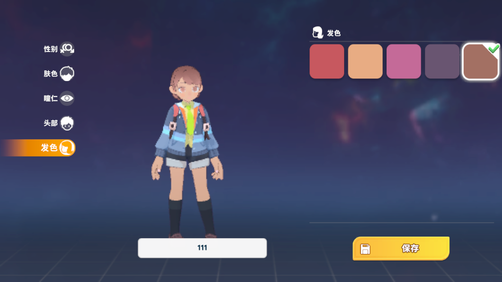 创建角色,可以选择性别、肤色、瞳仁、头部以及发色。