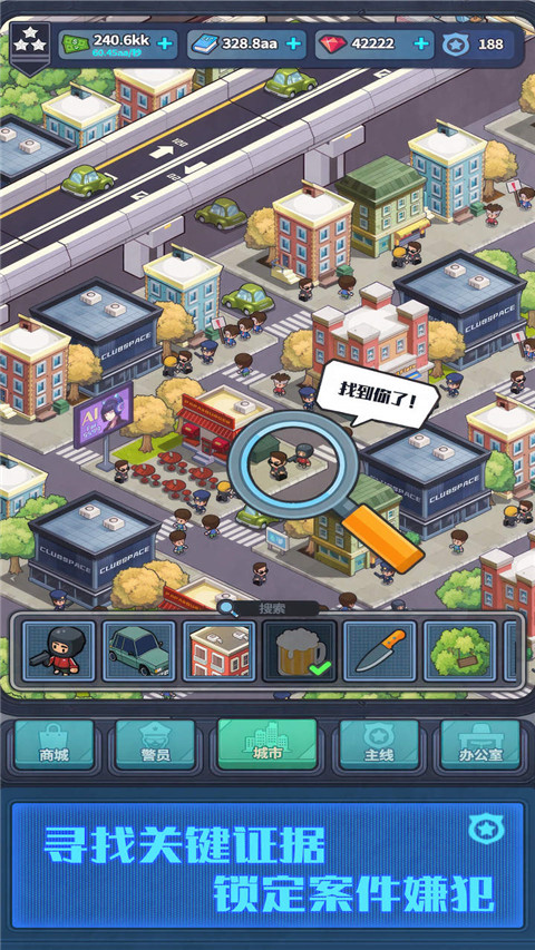 扮演警长,打击罪犯,维护城市安全。《警局模拟器》是一款简单易玩的模拟游戏,您将在其中扮演警察局长!在帮派猖獗的城市招募警察团队并建造更多警察局和设施,透过严密的逻辑,找到隐藏在城市中的黑帮头目,并安排你的精锐警察局长将他们全部消灭。明智地分配资源,壮大警察部门,培养警长,侦破案件,成为这座城市最传奇的警长!