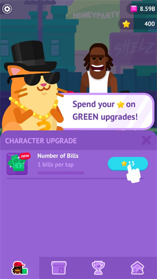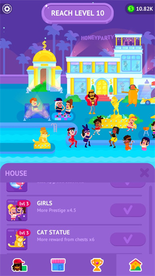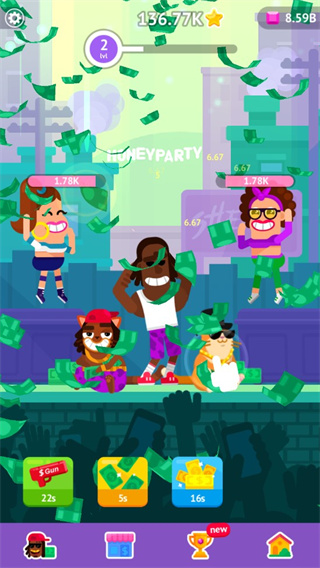 玩家可以给自己的角色进行升级了,通过升级我们可以更好的击败其他舞者,同时还可以给自己的房子进行改造,把它建造成最亮眼的房子。派对大师这款游戏并没有什么难度,但是在玩法上还是非常新颖的,不管是游戏的画面还是音乐,都把这款游戏的气氛给烘托出来了,并且除了点击式的玩法,游戏中还添加了房子的建造,大大的增加了游戏的可玩性,喜欢的朋友可以下载试试哦!