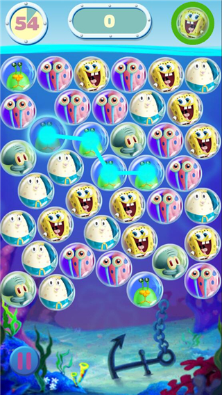 玩法大致上与其余消除类游戏区别不大,只需要把相同图案的三个泡泡或者以上将其连在一起便可进行消除。不过海绵宝宝泡泡派对正版游戏有一个特别之处在于,那就是泡泡的位置是不稳定的,当玩家完成一次消除后,被消除掉的泡泡所空出来的位置就会被周边的泡泡填充,因此会发生泡泡位置不稳定的事情,加上200+有趣关卡、角色、特殊泡泡及道具,随着玩家解锁其他的角色进入游戏内场景也会随之改变哦。