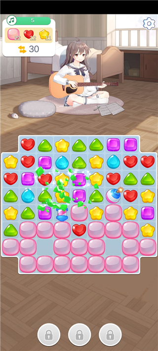搭配上休闲的背景音乐以及温馨的画风背景,并且游戏中玩家是可以自由切换歌曲的,这一点非常的不错的。吉他少女三消中,还为玩家们内置了大量的任务供其挑战,完成任务即可获得丰厚的奖励,以此解锁获得更多的服装、装饰品、吉他,从而点亮你的收藏图标和套装。