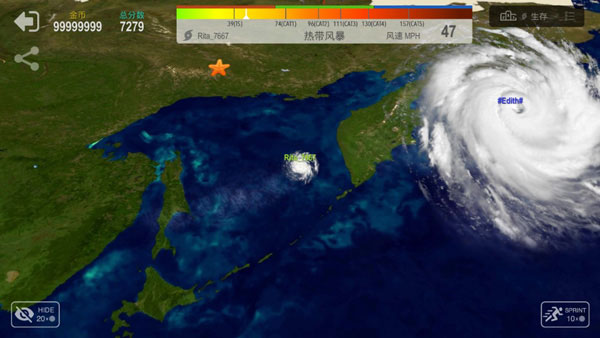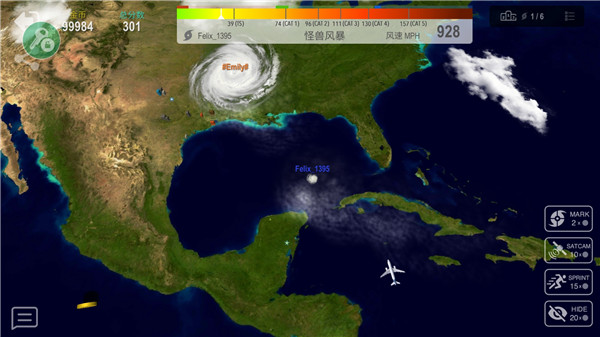 飓风大作战的玩法和贪吃蛇的玩法相类似,在这里玩家主要是以后能量的收集来完成自己的最终化目标,操作方式就是滑动屏幕进行移动,右下角是移动加速按钮,但这里需要玩家们注意一点的就是你的能量来源是空气中或海面上的水和热能,尽可能去猎杀比你规模小的飓风会使你成长的更快!