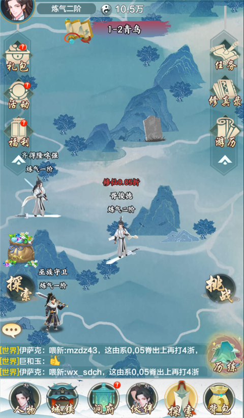 游戏中还有丰富的玩法,比如副本、归元阁、宗门、共鸣殿等,同时还有休闲模式如灵田和钓鱼。洞府系统也很重要,升级洞府可以提升修炼速度和解锁更多功能。游戏还提供了多种福利,包括充值返利、开服送人族伙伴、宗师特权、现金点奖励等,尤其是0.05折的充值优惠,吸引力十足。