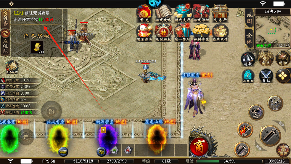 2、点击左上角的主线任务,根据提示完成即可领任务奖励