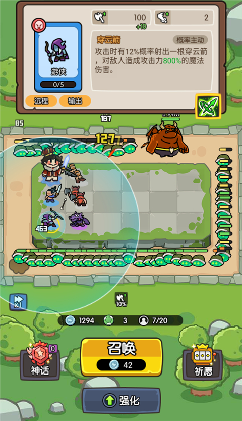 在玩法上,神之召唤官方版游戏采用随机召唤和合成为主,进入游戏中随机刷新英雄,召唤出的英雄又能以三合一的方式合成,合成获得高级别的英雄,还可以强化属性,当获得特性人物即可合成神话英雄,英雄玩家是可以在界面中进行升级获得更多属性技能效果的。在游玩的过程中拥有着魔性的背景音效,新奇的画风设计,让你放下疲惫的心理压力!