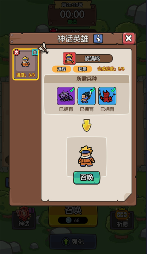 2、当有三个英雄即可进行合成;