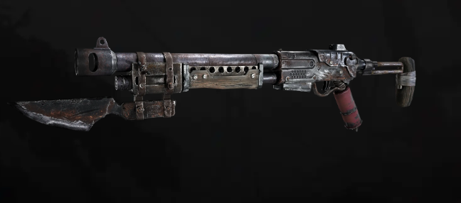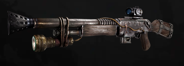 也叫老喷子,行走废土的人们最喜爱的防身武器之一,造价低廉威力巨大,经过改良在枪口下方加装了金属刀刃,还可在关键时刻作为刺刀进行搏杀,也可用于切菜剁肉实乃一举多得,是废土上干架越货居家旅行必备良品。
