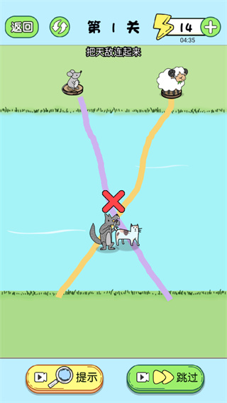 7、玩家闯关受到阻碍还可以点击游戏下方的提示和跳过按钮,提示按钮可以提示玩家如何闯关,跳过按钮就是直接跳过本关;