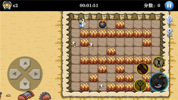 2、左侧是控制角色移动的摇杆,右侧是炸弹按键;