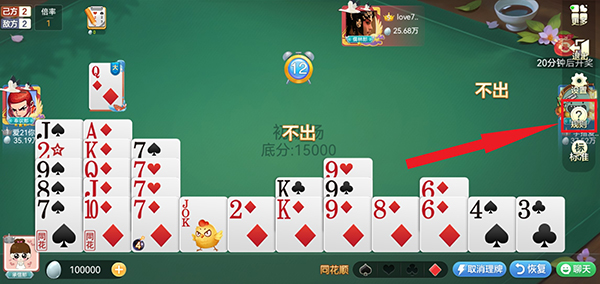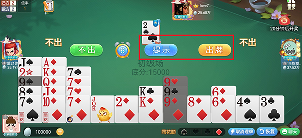 4、玩家也可以点击提示进行出牌,了解规则后就可以按照自己的思路出牌取得胜利啦。