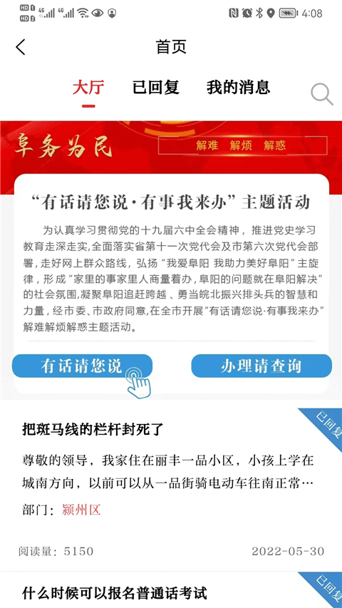 颍淮新闻app是一款专为阜阳颍淮地区打造的时政新闻软件,其旨在为民办事,为广大用户提供本地生活资讯的新闻服务平台,并面向广大网民和网络媒体,快速、准确地提供文字、图片、视频等多样化的新闻资讯等服务,真实反映每时每刻的新闻热点,更加方便你的生活。在这里你可以搜索新闻事件、热点话题、人物动态、产品资讯等信息,实时了解当地的最新的热点新闻内容,掌握最新的热点新闻。值得一提的是颍淮新闻客户端官方版让群众急难愁盼问题在网上也有人听、有人办、有人帮、有人管,打通了干群线上沟通渠道。不仅如此,该软件页面简洁大气,栏目设置全面、合理,版块设置丰富多彩,新闻全面、权威,用户可以实时掌握社会动态。同时,软件也是走好网上群众路线的重要举措,有力推动“两有三解”主题活动走深走实,是阜阳市民掌上生活、掌上办事、掌上获取新闻信息、掌上汇集民意的重要渠道。此外,颍淮新闻app既能把党和政府的声音通过平台传递给更多的老百姓,同时也让老百姓多了一个了解政务的平台,使得党和政府与百姓之间的联系、沟通更加顺畅,需要的小伙伴们快来下载使用吧。