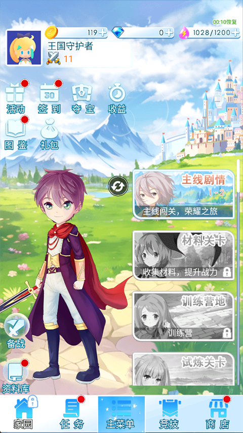 游戏中有多种关卡模式,如主线剧情,材料关卡,训练营地,试炼关卡等。
