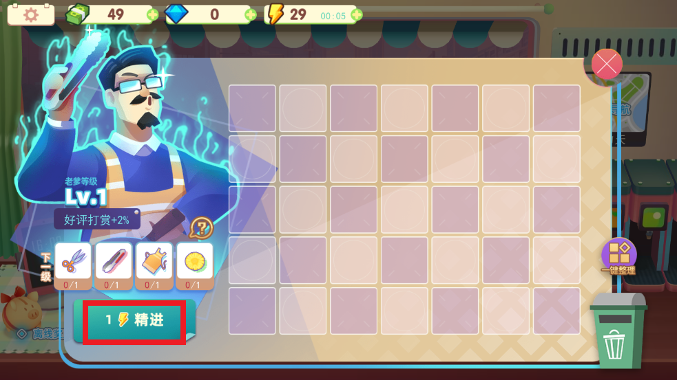 花费相应数量的钻石购买道具,在制作美食时可以提高效率。