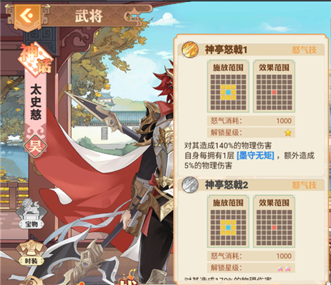 太史慈技能属于单体攻击,主要对单个目标造成伤害,从回合技以及怒气技的技能说明可以看出太史慈的物攻伤害极高,并且可以通过升星叠暴击和暴击伤害。