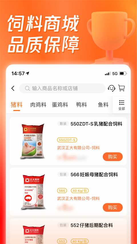 2、猪饲料:在线购买饲料,方便快捷、品质保证。
