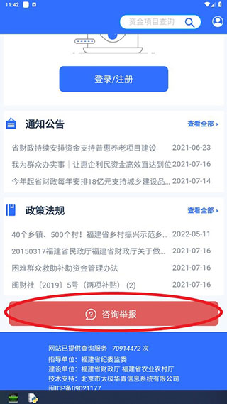 用户在任意一个模块进行查看都的时候如果发现有问题就可以下滑的页面的最下方,进行咨询或者举报这个问题。