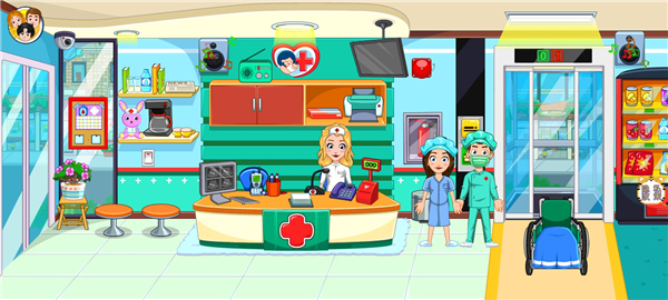 3、卡通的游戏画风,自由度超高的游戏活动,随时都能在这小镇医院里体验属于你的故事。