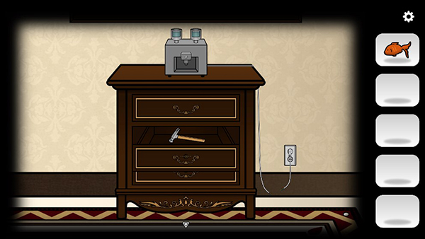 玩家获取到钥匙之后可以到第四个房间,开启第二个锁着的柜子,获得锤子,锤子可以到第一个房间把地毯的钉子拔出来获得新的线索。