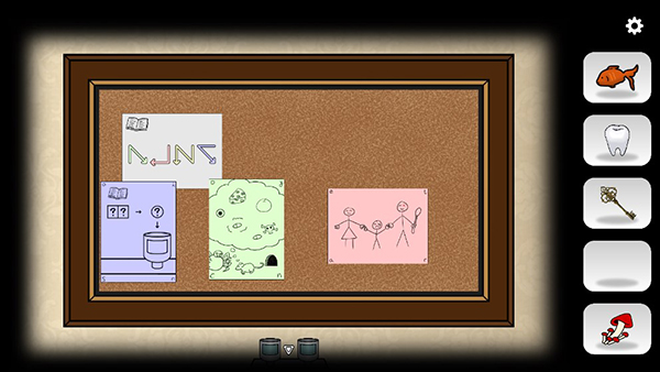 玩家收集到不同颜色的纸条,可以去第四个房间将纸条放到画板上获取线索。