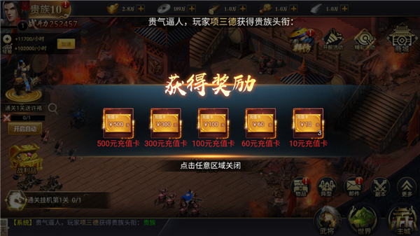 3、在线送十连:高级十连、红色武将、绝版称号在线送
