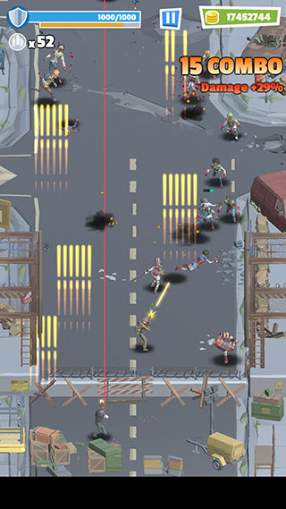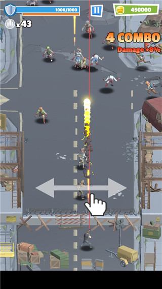 玩的时候我还发现,关卡里的丧尸居然还有进化,这点设计得很巧妙,玩家得时刻提防它们的攻击。而且游戏里道具随便用,一键清屏特别方便。操作也简单,左右滑动就能射击,还能升级武器提升射速和子弹数量,连击效果配合动感音乐,玩起来超带感。