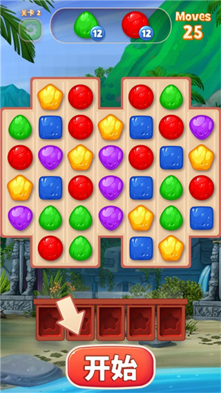 2、进入游戏后直接点击跳过剧情就可以进入下图的消除玩法啦;