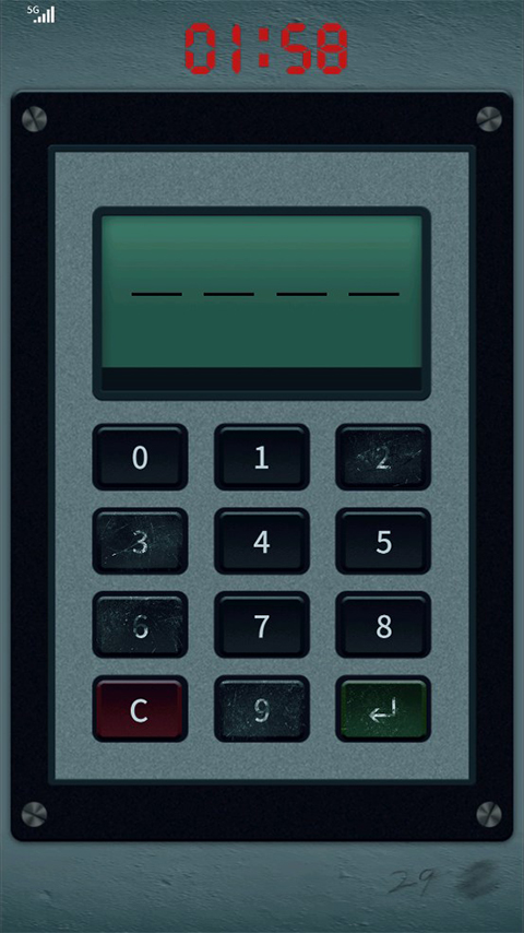 1、给我10秒:在10秒内完成密码破解。破解方法是:观察发现密码键盘上有四个键盘有明显磨损痕迹,而在密码盘右下方又给出了前2位数,因此后2位数至多只需要试2次即可。