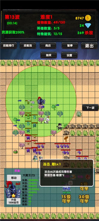 3、玩法还是比较新颖的,能够自己选技术,然后还能不断叠加作用;