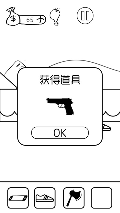 9、商店上拉,购买三个道具,关闭商店界面,摇晃手机,拾取炸弹,用炸弹吞掉其他三个道具