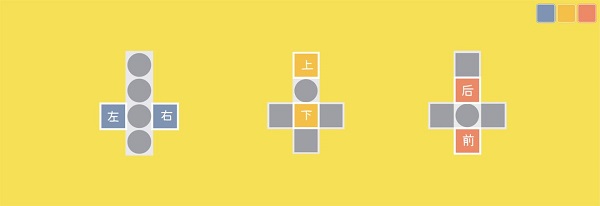 以展开一个六面体的方式逐步点击放置六个面,拼凑同色达成消除!