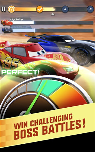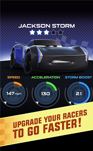 赛车总动员闪电联盟是一款相当有趣充满紧张刺激感的赛车竞速类游戏,本作是以《赛车总动员》为蓝本进行打造的,完美的重现了闪电麦坤、克鲁兹·拉米雷斯、杰克逊风暴等电影当中的众多传奇赛车手,玩家可以亲手驾驶着他们在赛道上驰骋狂飙,尽情穿梭海滩,加速飙越水箱温泉镇,体验最真实畅快的赛车体验。赛车总动员闪电联盟的上手难度不高,简易易操作,有超多的关卡可供玩家们挑战,通关后还可获得大量的金币和宝箱,玩家可以通过这种方式来解锁其他赛车,使用金币对其进行升级,提高他们的各项性能,还可以使用酷炫喷漆造型来定制专属于你的独特赛车,相当不错,感兴趣的小伙伴们可千万不要错过,赶快在本站下载吧。