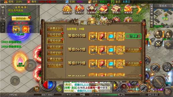 2、【在线福利】:角色在线、等级转生送提升材料,奖励领不停!